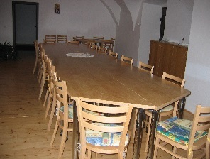 V přízemí farní budovy se nachází velká plně vybavená kuchyně a společenský sál pro 30 osob. Nechybí odpovídající sociální zařízení. V prvním patře najdete ještě malou kuchyňku, která slouží spíše jako kavárnička a malý sál pro setkání menší skupinky v útulném prostředí. Zde probíhá také pravidelná výuka náboženství a příležitostné přednášky nebo diskusní, případně hudební večery.